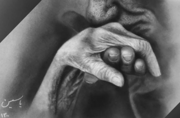 قصدم از کشیدن این نقاشی دوست داشتنی بافت پیر روی دست و انگشتان بود. که این نقاشی بوسه بر دستان مادر و یا تقدیر برای زن است.