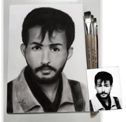 این نقاشی سیاه قلم هم سفارشی بود٬ عکس اصلی رو گوشه تصویر سمت راستتون ملاحظه می‌فرمایید.